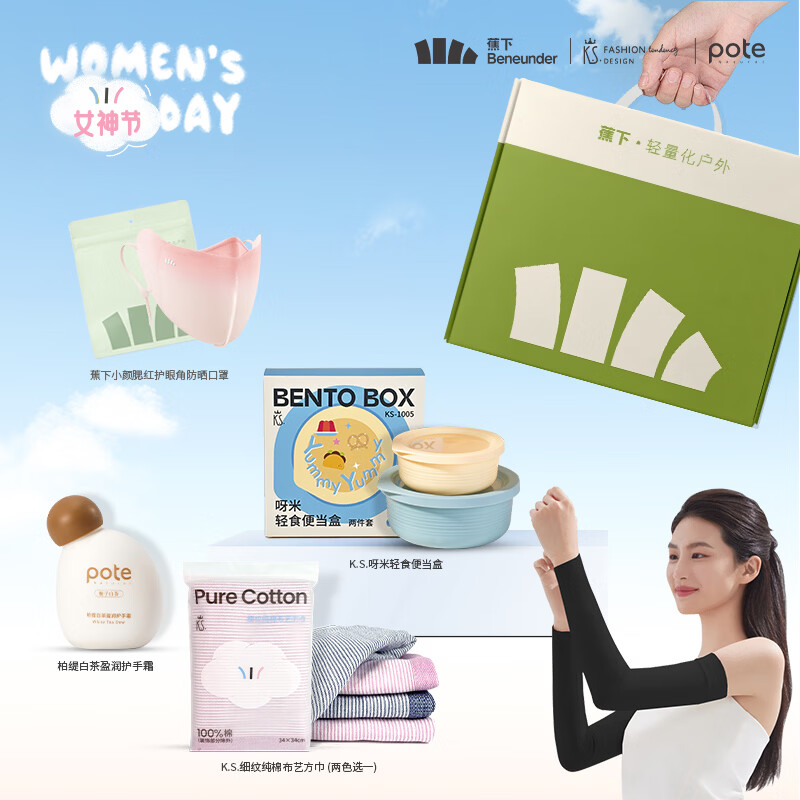 加入PPT蕉下防晒口罩 首创蕉下物理护肤更科学的面部养;方巾双面透气轻柔易干手感绵柔舒适触感;便当盒颜值实力派 INS风波纹设计,纵享浪漫食刻