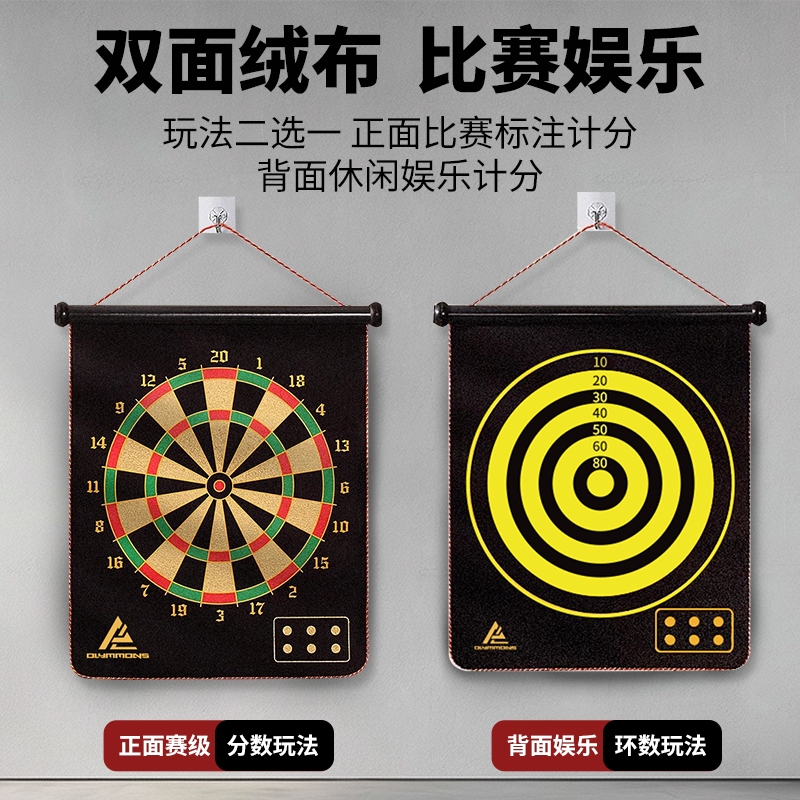 精选磁性镖头,配以防滑纹路握柄;确保投掷稳定性和精准度;绒布+ 磁性金属板靶盘;分区清晰,耐扎耐用,轻松还原赛场体验