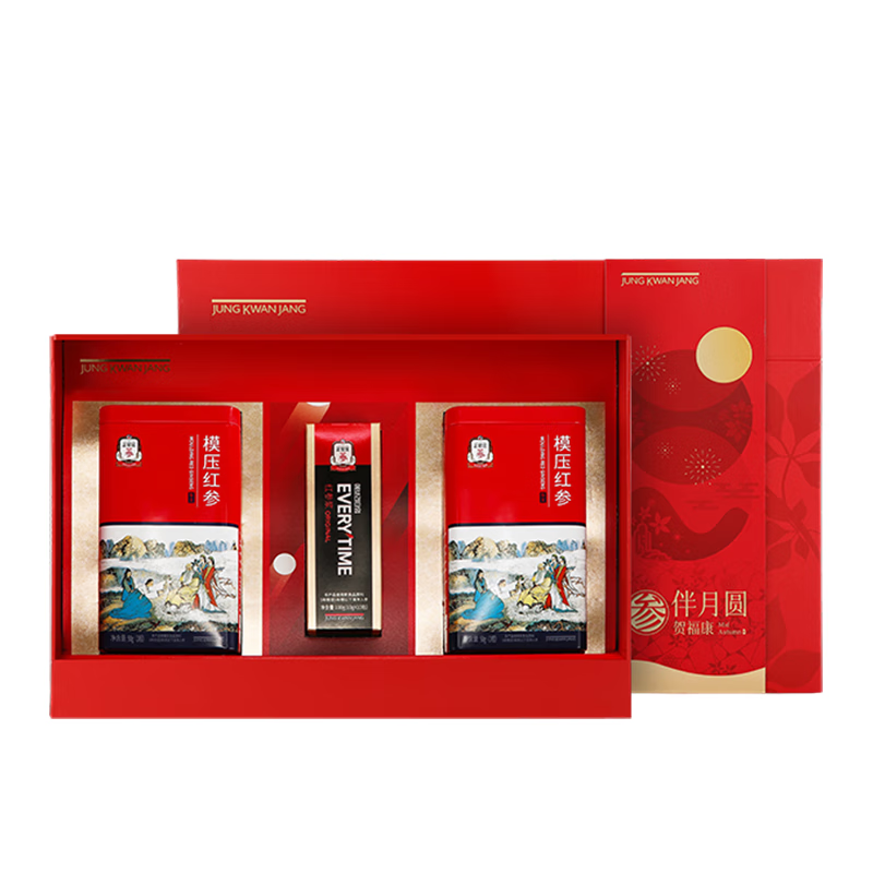 整根模压,根根精华;主根参体纹路清晰,棕红油润;纯净水中的100%红参原液,每包含量3.0