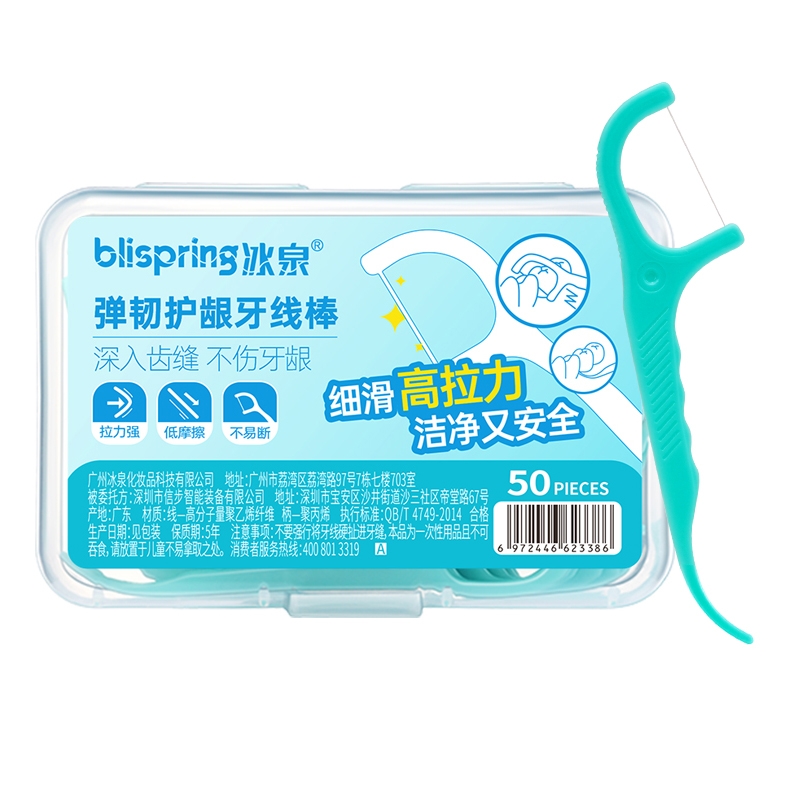 超细滑高分子牙线棒便携包装;0.05mm细线,不伤牙齿;弹韧护龈牙线棒