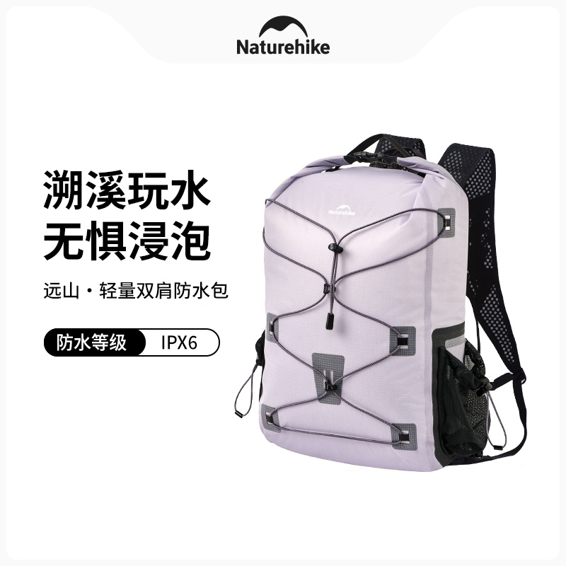 ¥ 320IPX6级防水设计,溯溪玩水不渗不漏;轻盈包体,仅重370g,背上一天不喊累;闲置时好收纳,小体积一目了然;搭配高强度弹力绳,可外挂湿掉的衣物