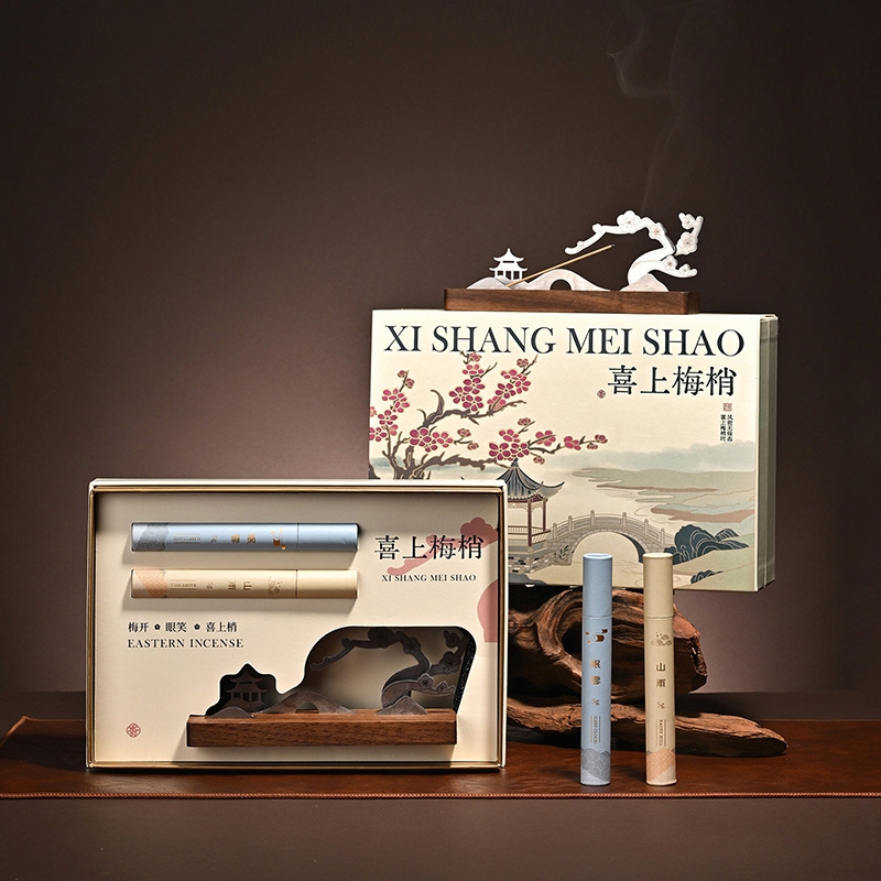 香插以梅花的形态设计;不锈钢金属材质雕刻;以天然香材入香,以創意設計入器