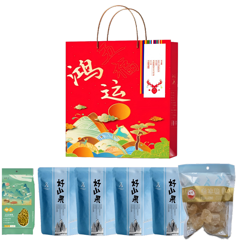 工厂获得ISO22000:2018认证;自有品牌和工厂,原料严格把关,品质保证,性价比高。;礼盒搭配品类丰富,原生态食材,营养健康。