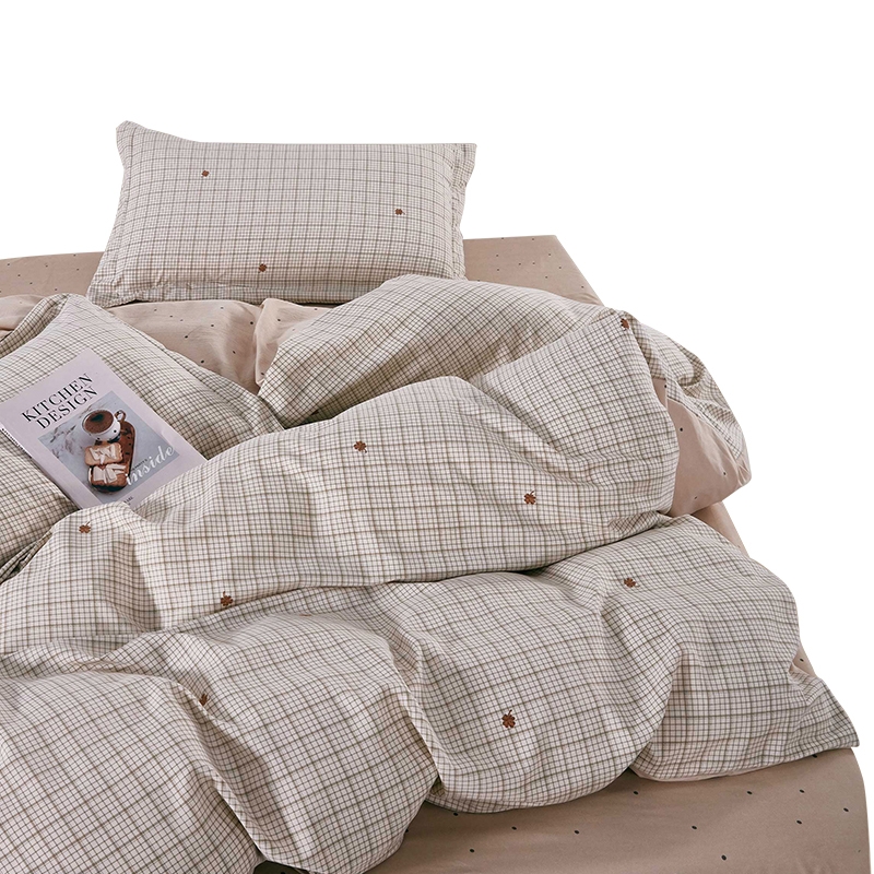 加厚水洗棉绒面料,细密紧实,吸湿透气;经典纯色设计,适合不同家居风格;锁边内缝式被套,圆角贴边床单,工艺精致