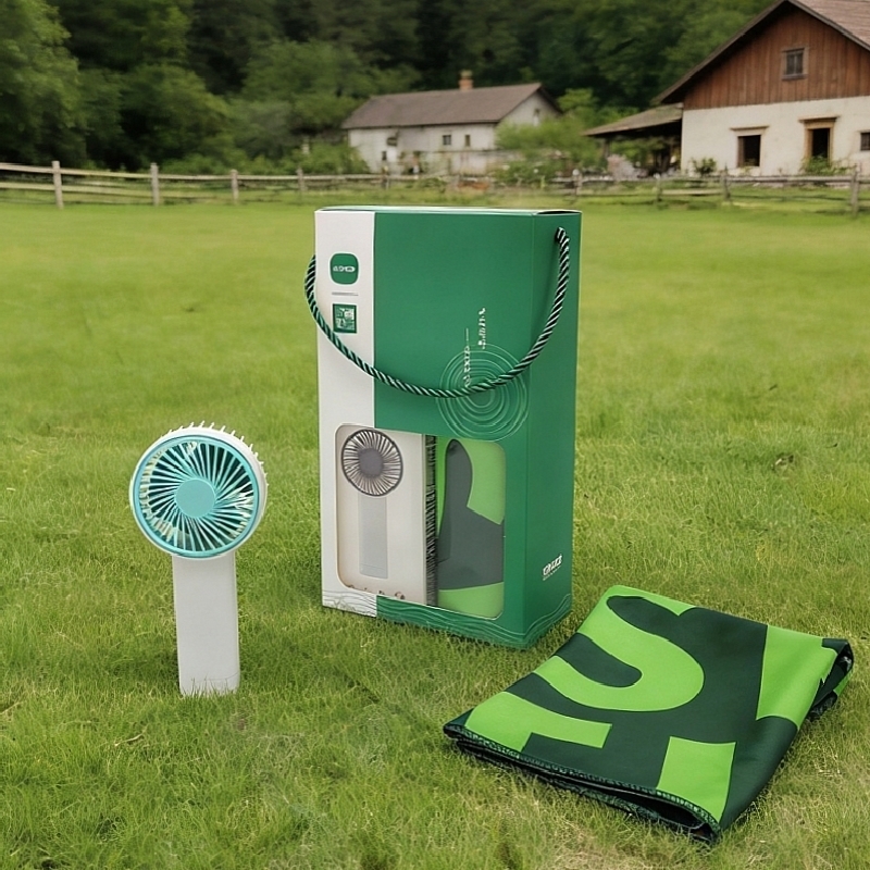 清凉小风扇 500毫安 续航90分钟左右 风力三挡;七彩运动冰巾精选冷感面料结合数码印花工艺 ;夏季清凉组合套装