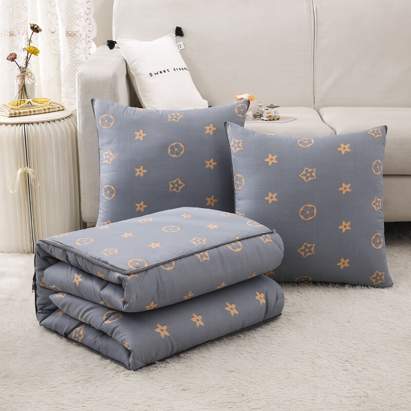 采用精梳棉面料,颜色鲜艳、丰富;填充环保羽丝纤维,轻薄透气,简约而不简单;抱枕被方便收纳,折叠后可作为家居抱枕