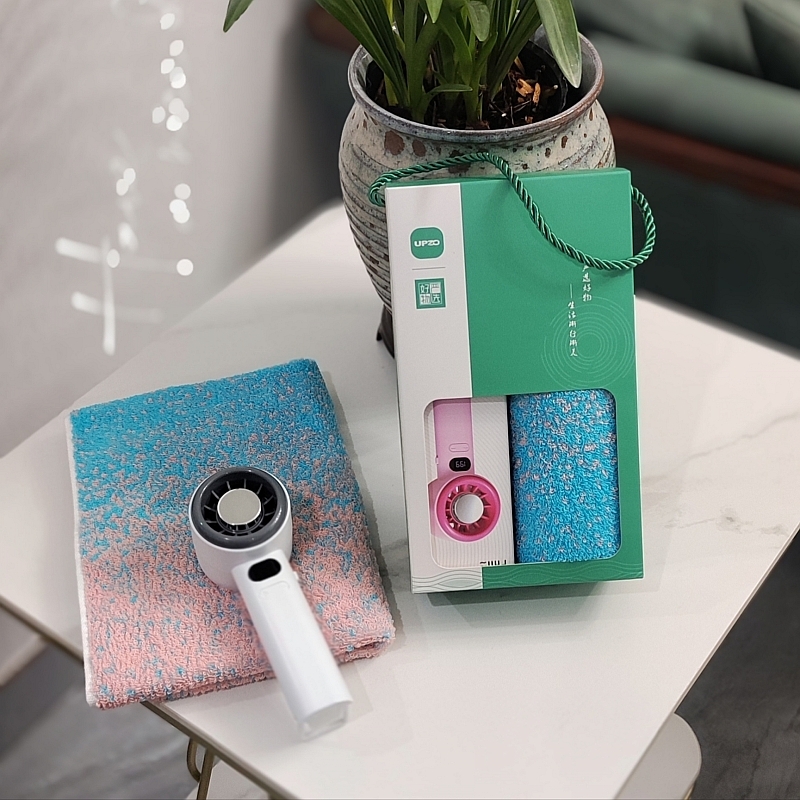 精梳棉毛巾简约设计 优质精梳棉材质;大号风扇续航时间1-1.5小时 400毫安电池;天地盖礼盒 季节性组合 高颜值 产品质量优异