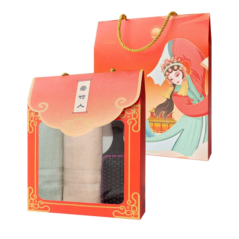 微米国风毛巾 精制包边 厚实面料 结合国风刺绣 ;三条装礼盒 顺遂 大吉 欢喜 祝福融入;迪穆系列天地盖礼盒加手提袋设计 靓丽外观