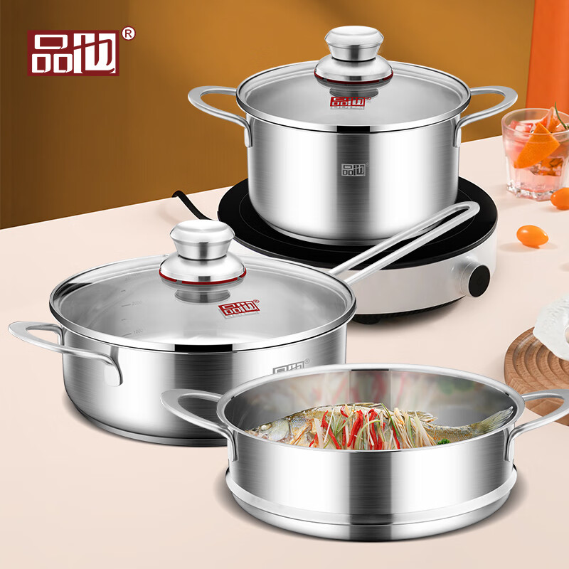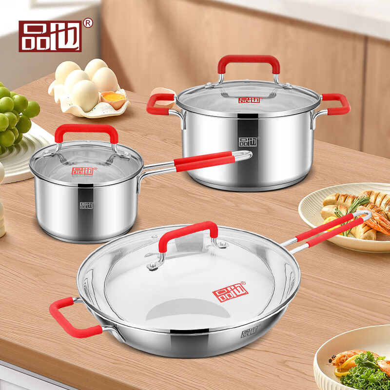 无涂层不锈技术防刮耐磨金属铲通用;底厚壁薄受热均匀,少油烟;可立锅盖轻巧易放