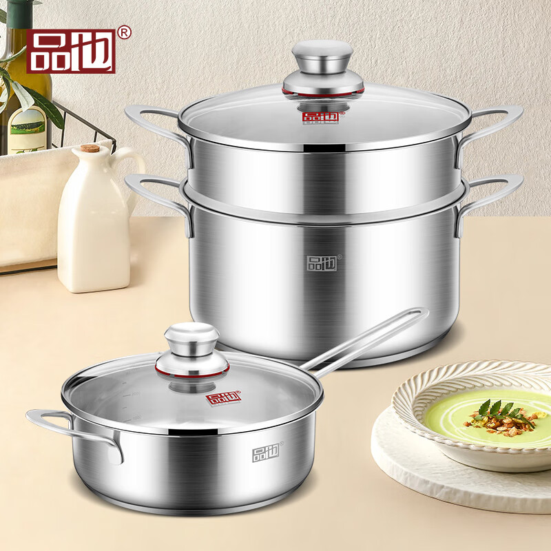 厚重坚实,导热更迅速,节能省时;不挑灶具,可适合不同灶具;双层设计,下煮上蒸,更省时