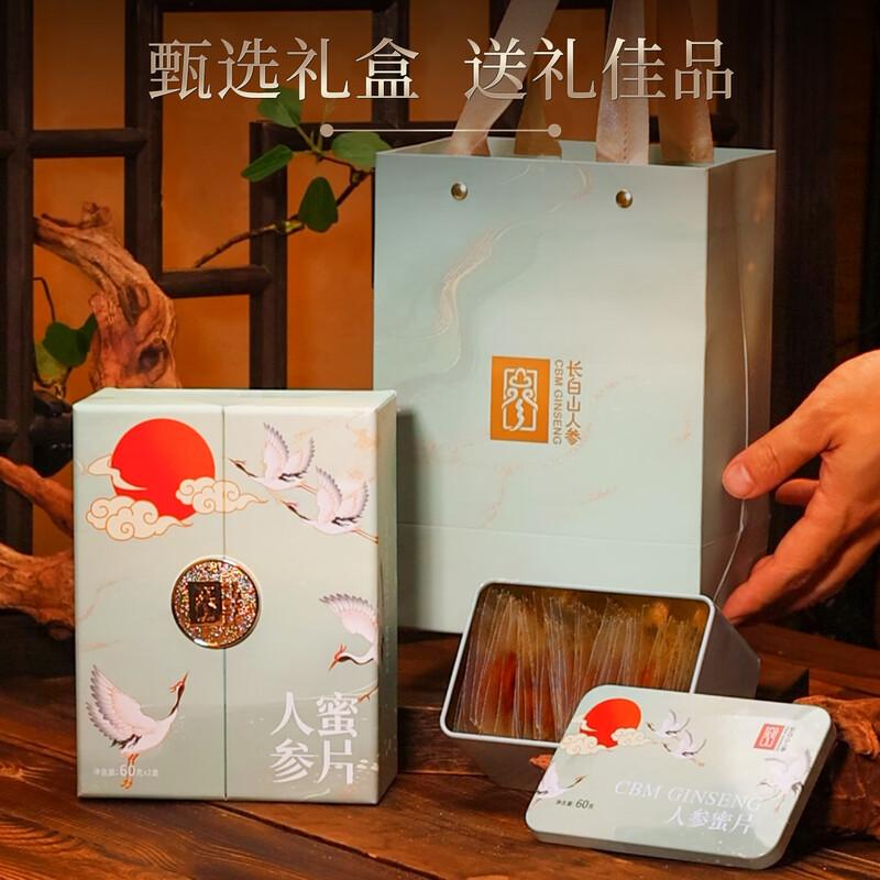 质地饱满,参香四溢;可切片含服、泡水喝、煲汤等;精致礼盒参情厚谊