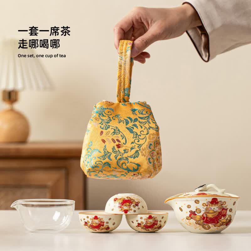 喵运当头招财如意快客杯;茶人雅物,无尽韵味;招财猫图案,鲜活形象