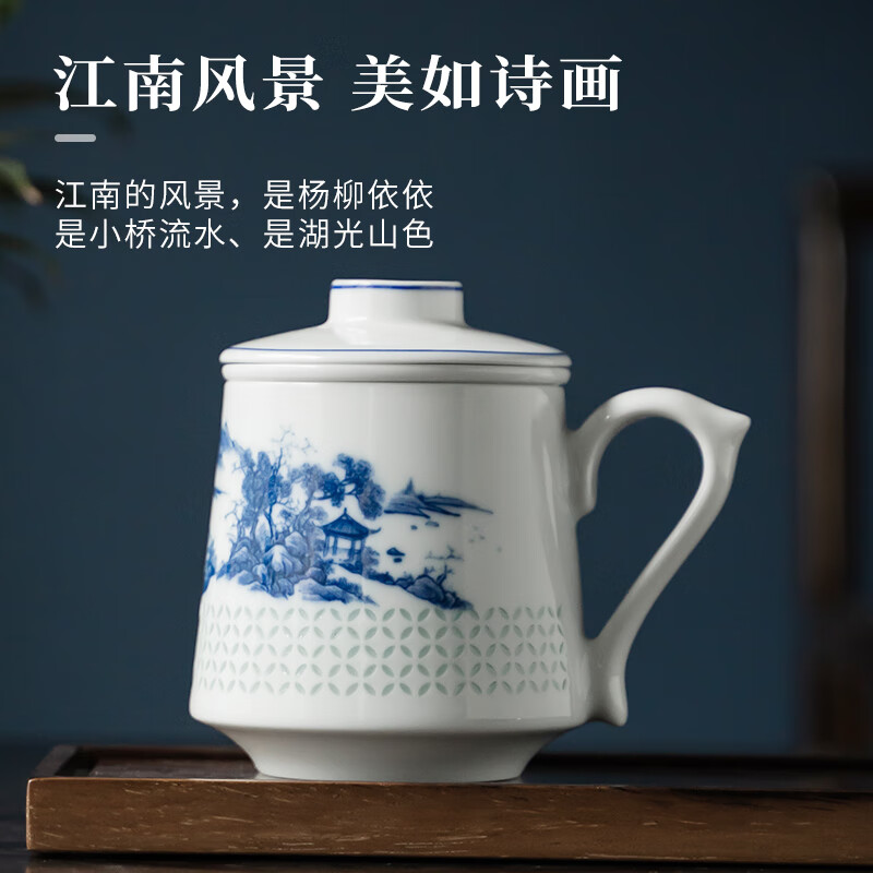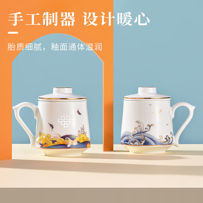 山海办公杯茶水分离,冲泡方便;山海办公杯外观精美,富有文化内涵;山海办公杯防烫设计,安全可靠
