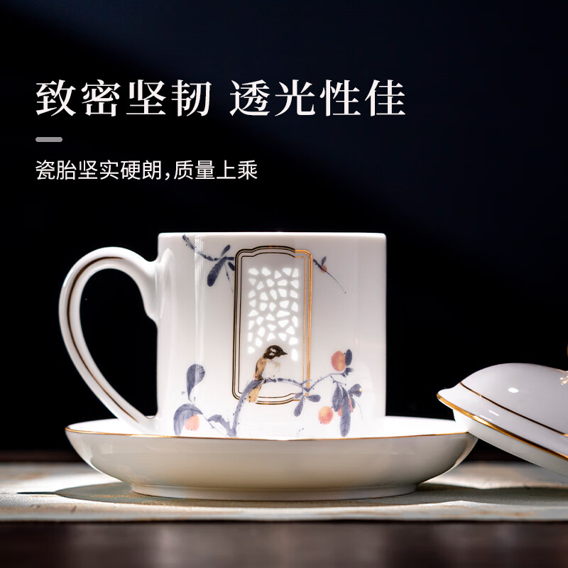 景德镇高温陶瓷;胎质细腻,釉面通体温润,强光下无光斑;带茶漏,杯盖可做滤托使用时低调却不失内涵