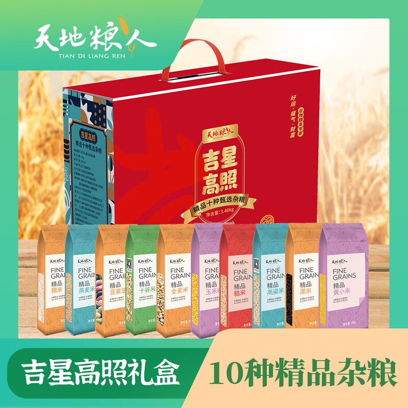 品类丰富分量足,优质品质,送礼家用两相宜。;营养均衡杂粮礼盒,品质好,场景适配广;丰富杂粮组合,品质优,居家馈赠皆适宜