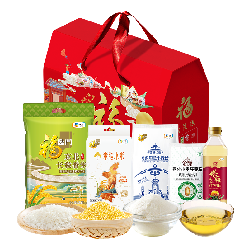 金龙鱼是大品牌,质量安全、品质保证,吃的放心。;礼盒内配5种产品,都是家庭必需品。;礼盒设计精美,包装大气喜庆,性价比高,值得购买。
