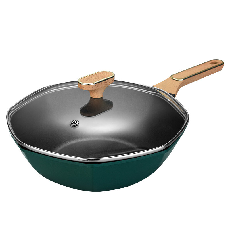 合金材质 一体压铸;八面不粘 清洗方便;电磁炉燃气通用