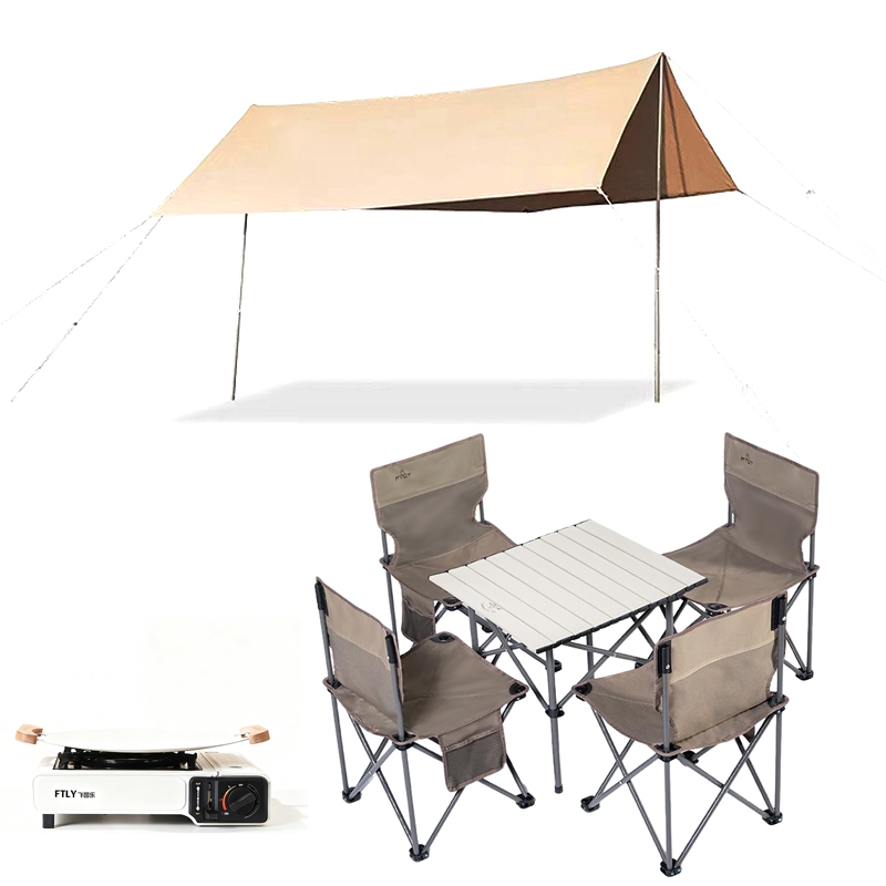 防晒UPF50+ ,防水pu1500+,有效防晒防;一桌四椅,折叠收纳,不占空间 ;;搭配户外卡式炉+麦饭石烤盘,露营好帮手;