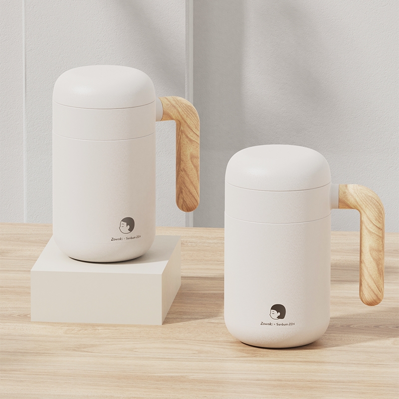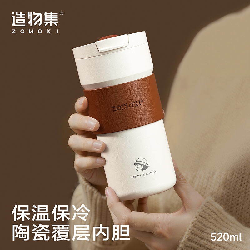 双饮口设计,适用不同场景;便携提绳设计,方便出行;质感皮革杯套,高级又舒适