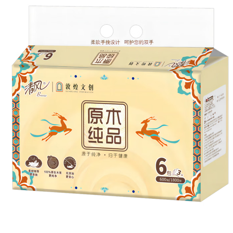 • 清风 原木金装抽纸4层90抽6包BR61SJ