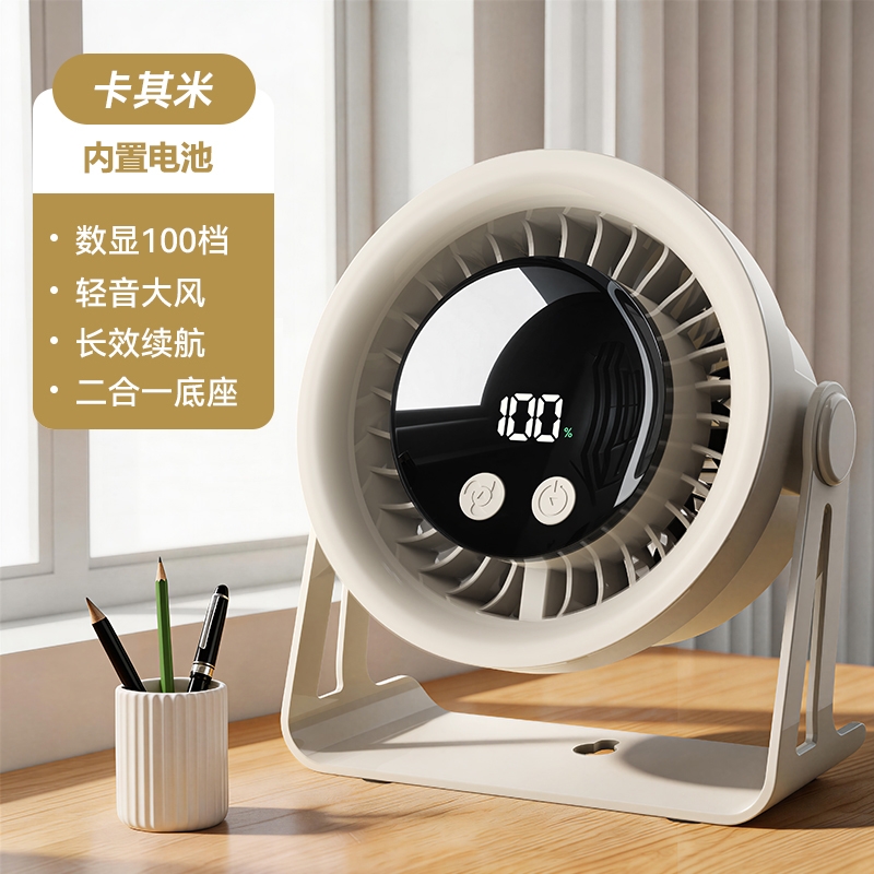 产品风量五档可调,风力强劲,桌面悬挂两用;数显电量、全新风道设,360°手动旋转吹风;手机通用Type-c充电接口、180度可调支架