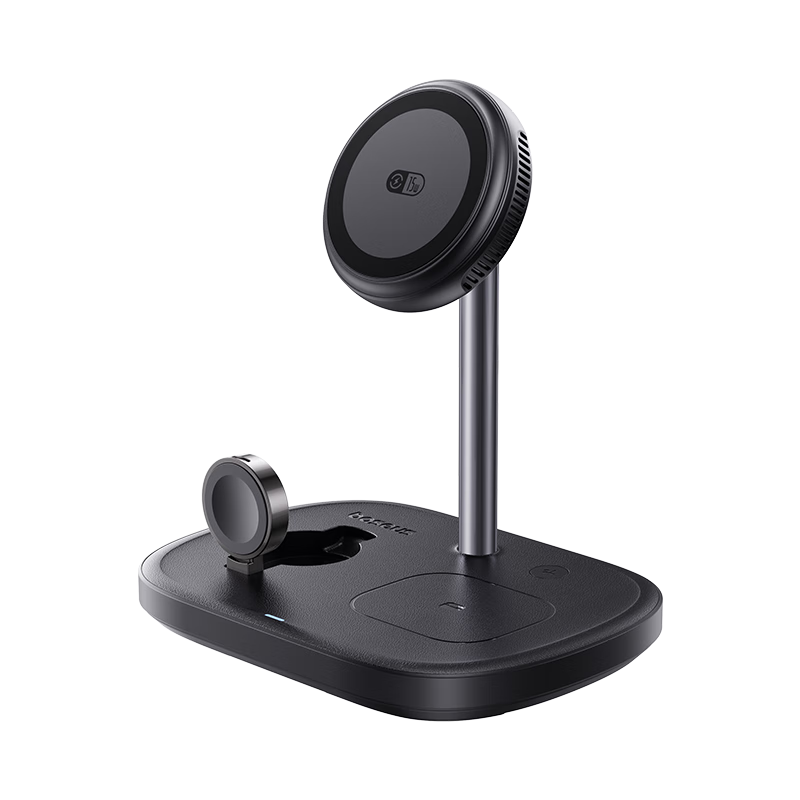 超强磁吸力,一吸即充,不掉落;创新三合一设计,全面适用苹果全家桶;15W安全快充,满电不久等
