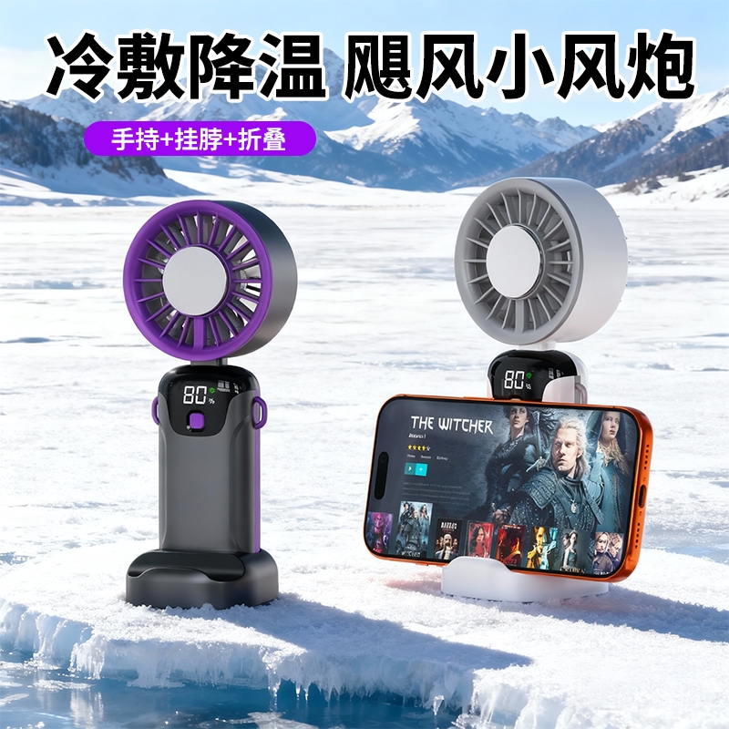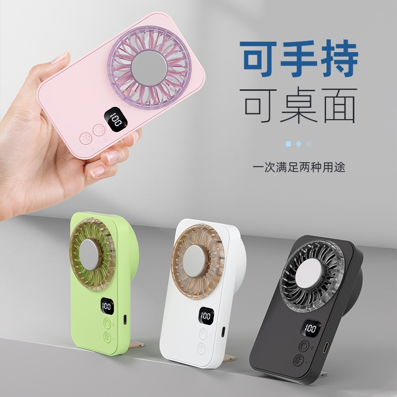 手持便携,支架稳固,一机多用;小巧便携,体积轻便,随手可带,不占空间;强力降温,快速送风,带来清凉体感
