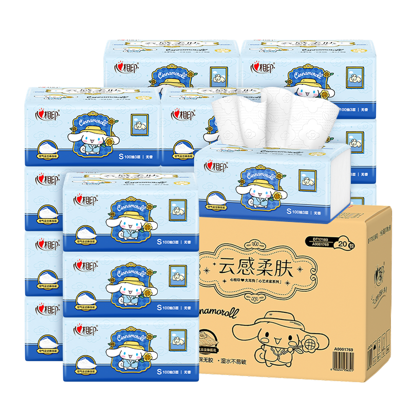 四层柔厚亲肤;空气云立体压花;100%原生木浆