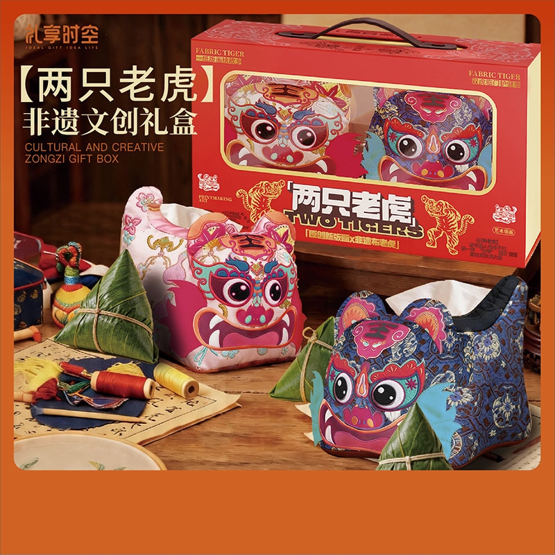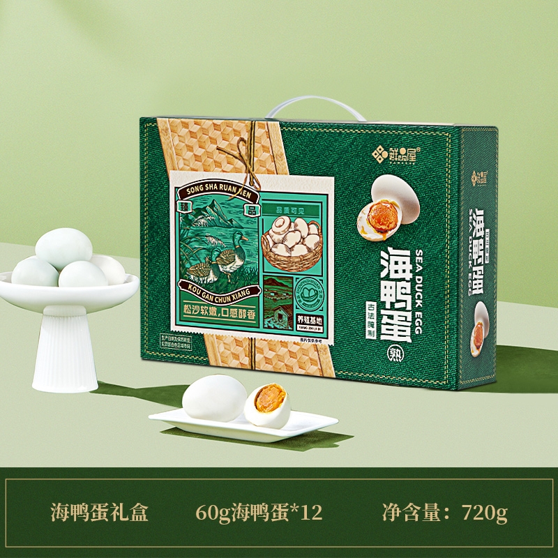 以手提式礼盒承载佳节心意;包装明丽色彩映衬盛情,恰似华庭设宴,宾主同欢;内含五粽五味,一肉四素,搭配两枚海鸭蛋