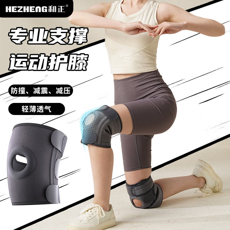 四根弹簧支撑条,增强稳定性;升级COOLMAX面料,亲肤透气,吸汗排湿;EVE髌骨衬垫,防撞、减震、减压;背面升级铺满防滑条,超强稳定、不易滑落;三条加压束带,高效包裹膝盖,自由调节各部位松紧