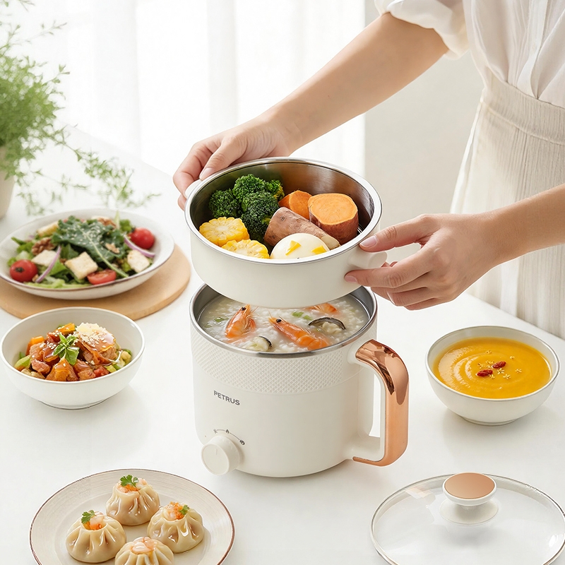 1.5L黄金容量,自带蒸笼;全不锈钢食材接触,安全卫生;双重温控保护,自动断电,安全放心