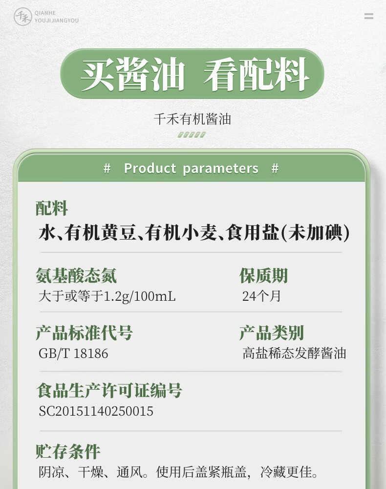 配置清单:千禾有机酱油\500ml