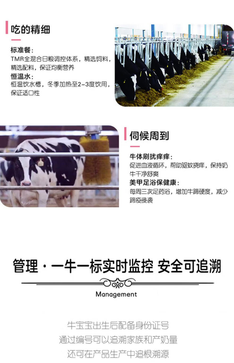 口感香浓顺滑:原生乳脂带来醇厚口感,奶香浓郁不腥;精选牧场奶源,3.3g高蛋白,百项检测+国家队认证;原生高钙加持:搭配天然原生钙,蛋白与钙双补