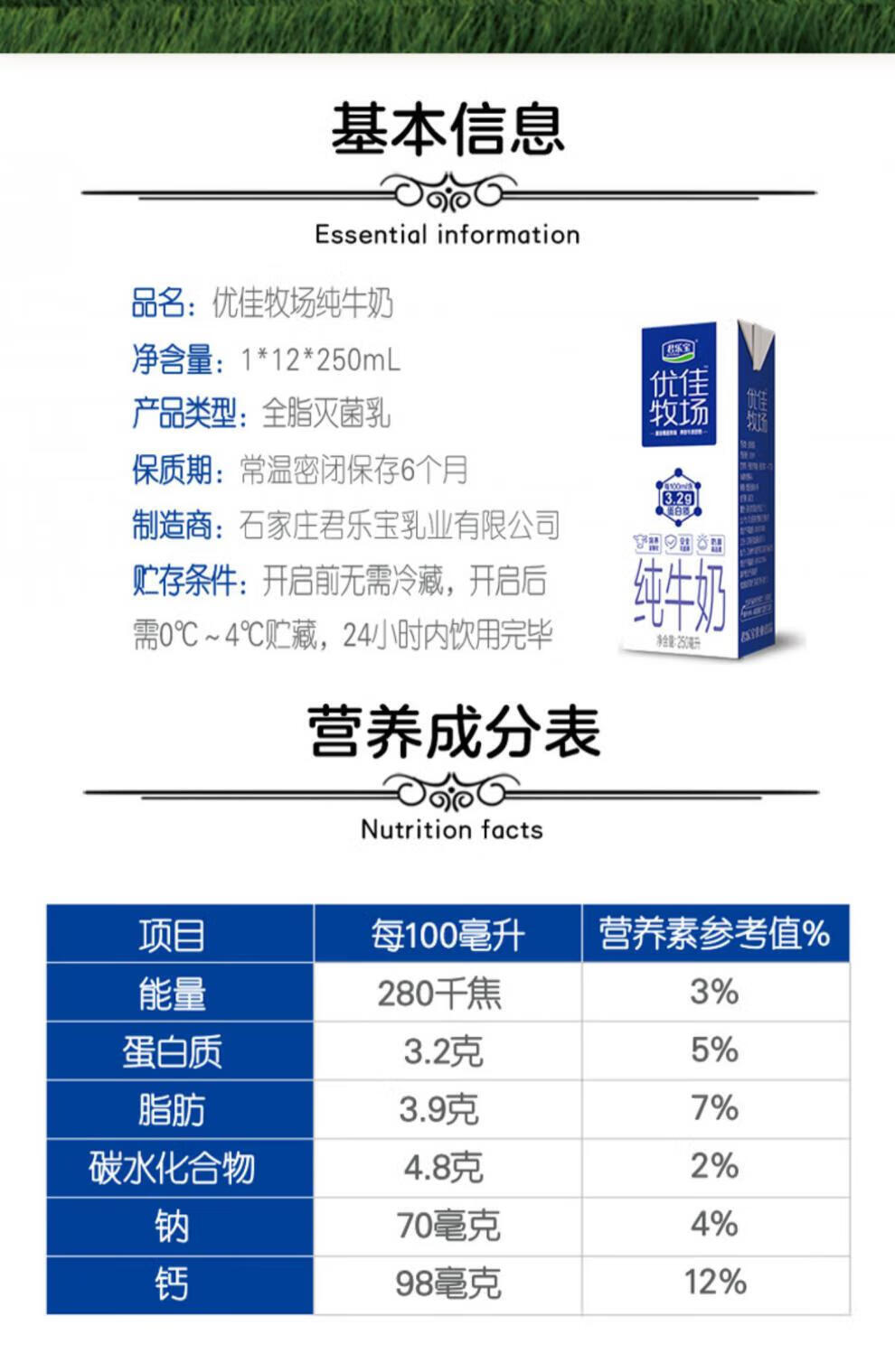 君乐宝 优佳纯牛奶250ml*12