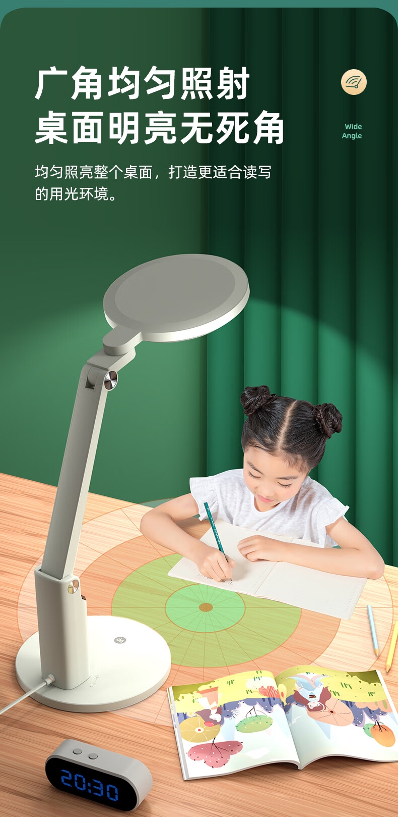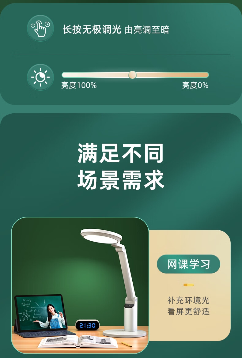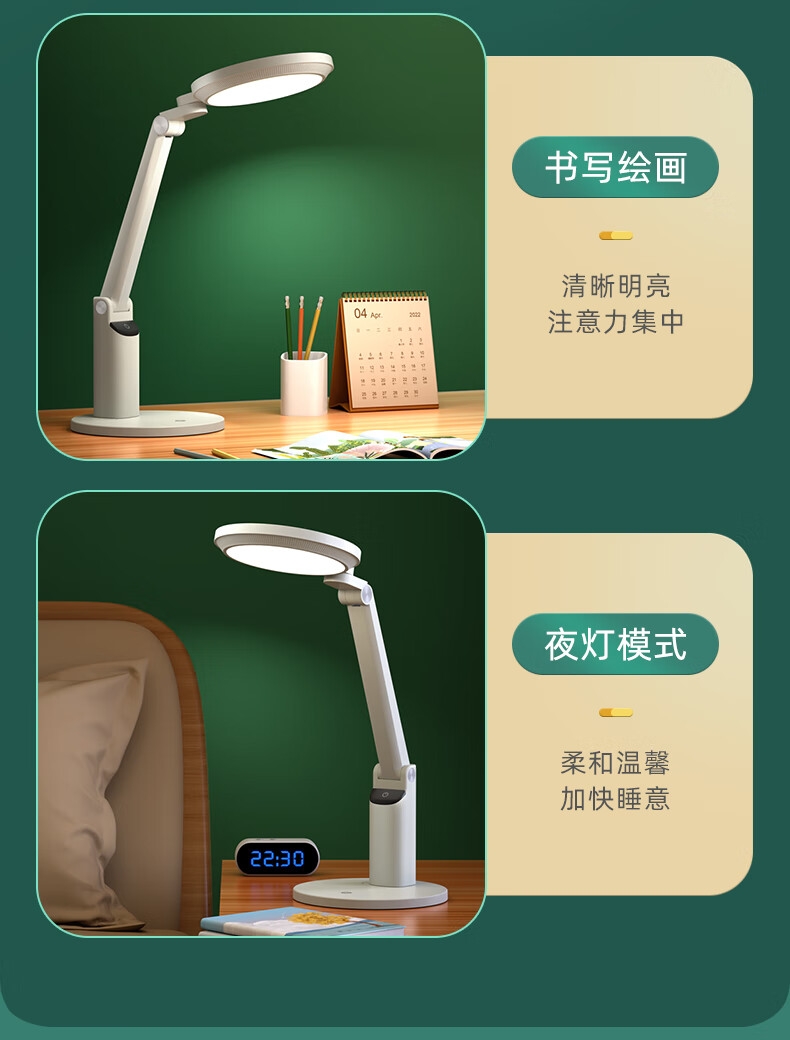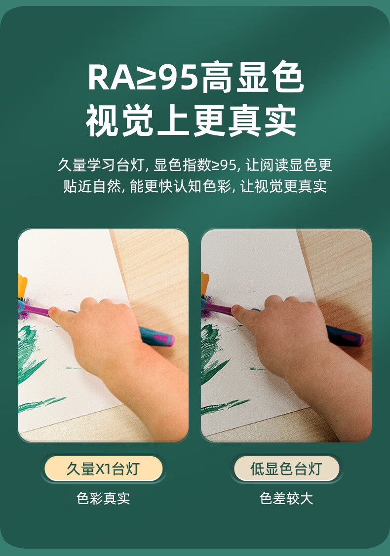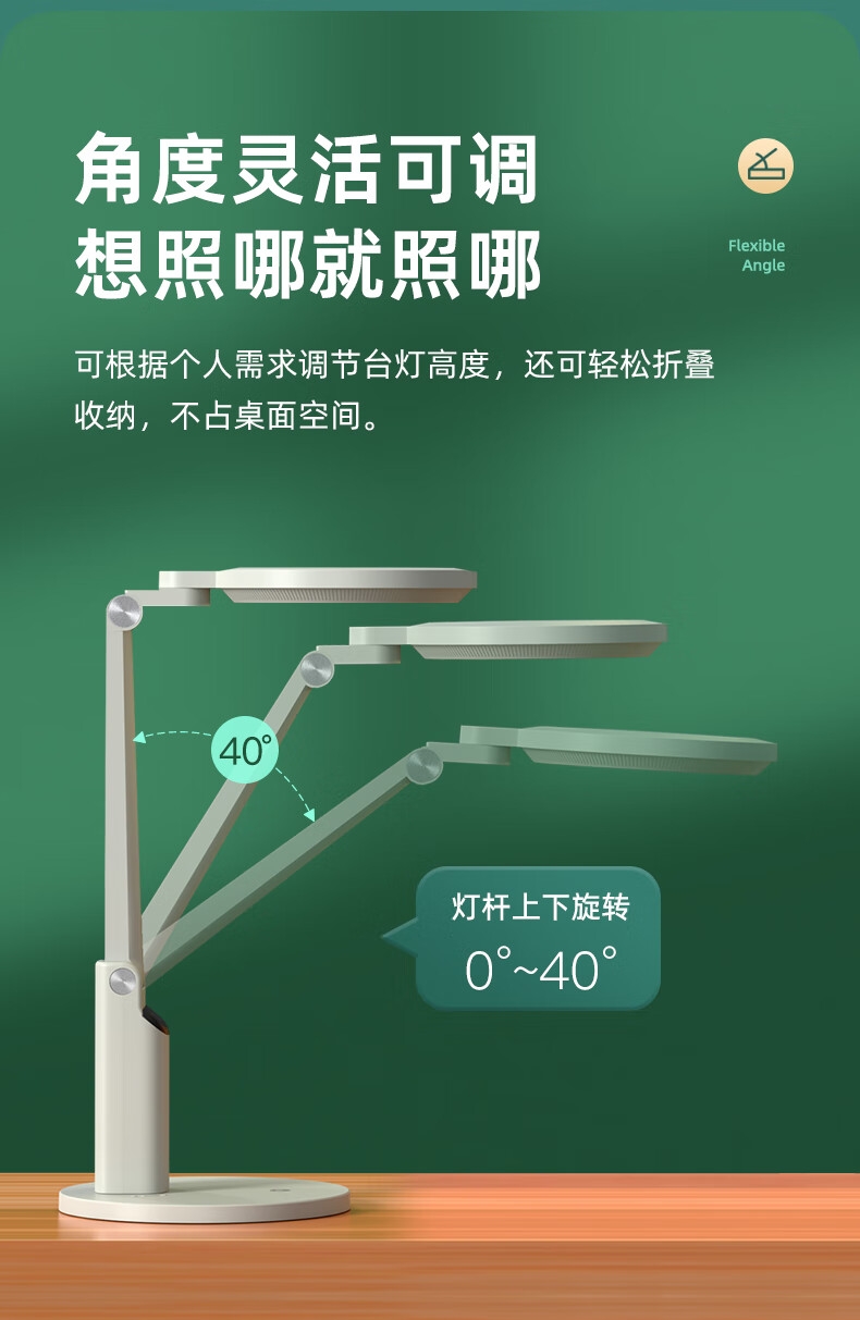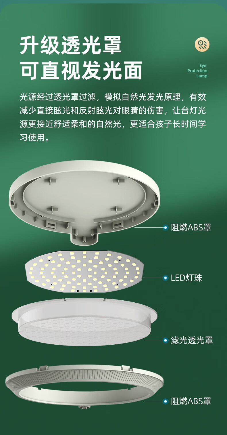 本品采用SMD LED灯珠,国AA级照度光线柔和均; 3C台灯认证,预防近视认证,全光谱台灯,趋近自然;RA≥95高显色,角度灵活可调,想照哪就照哪