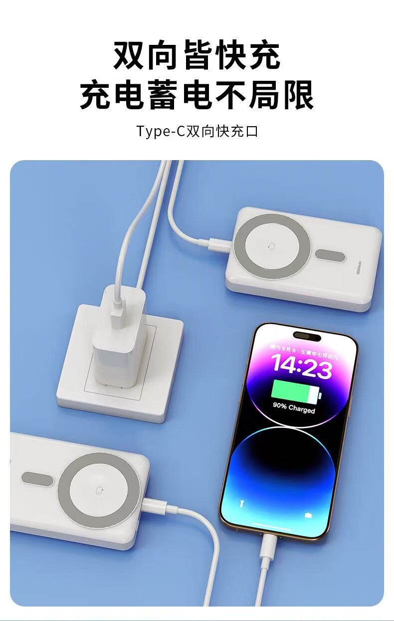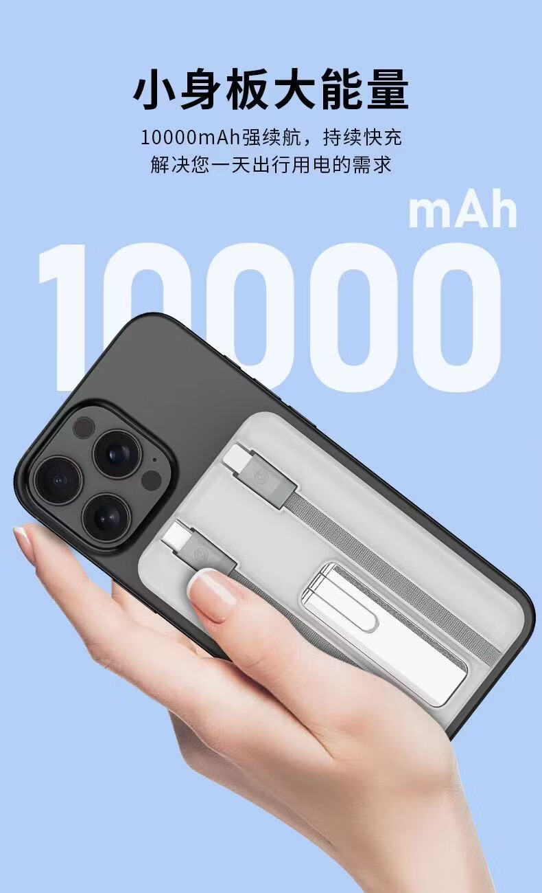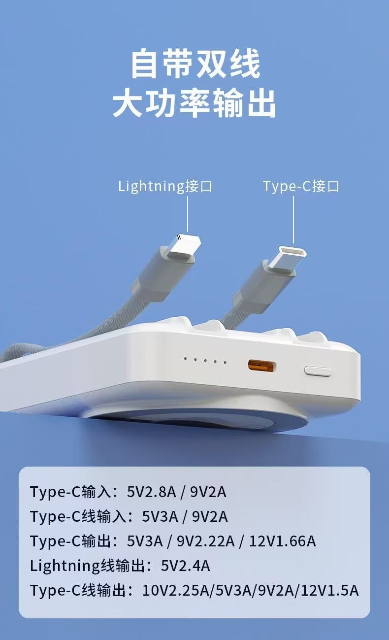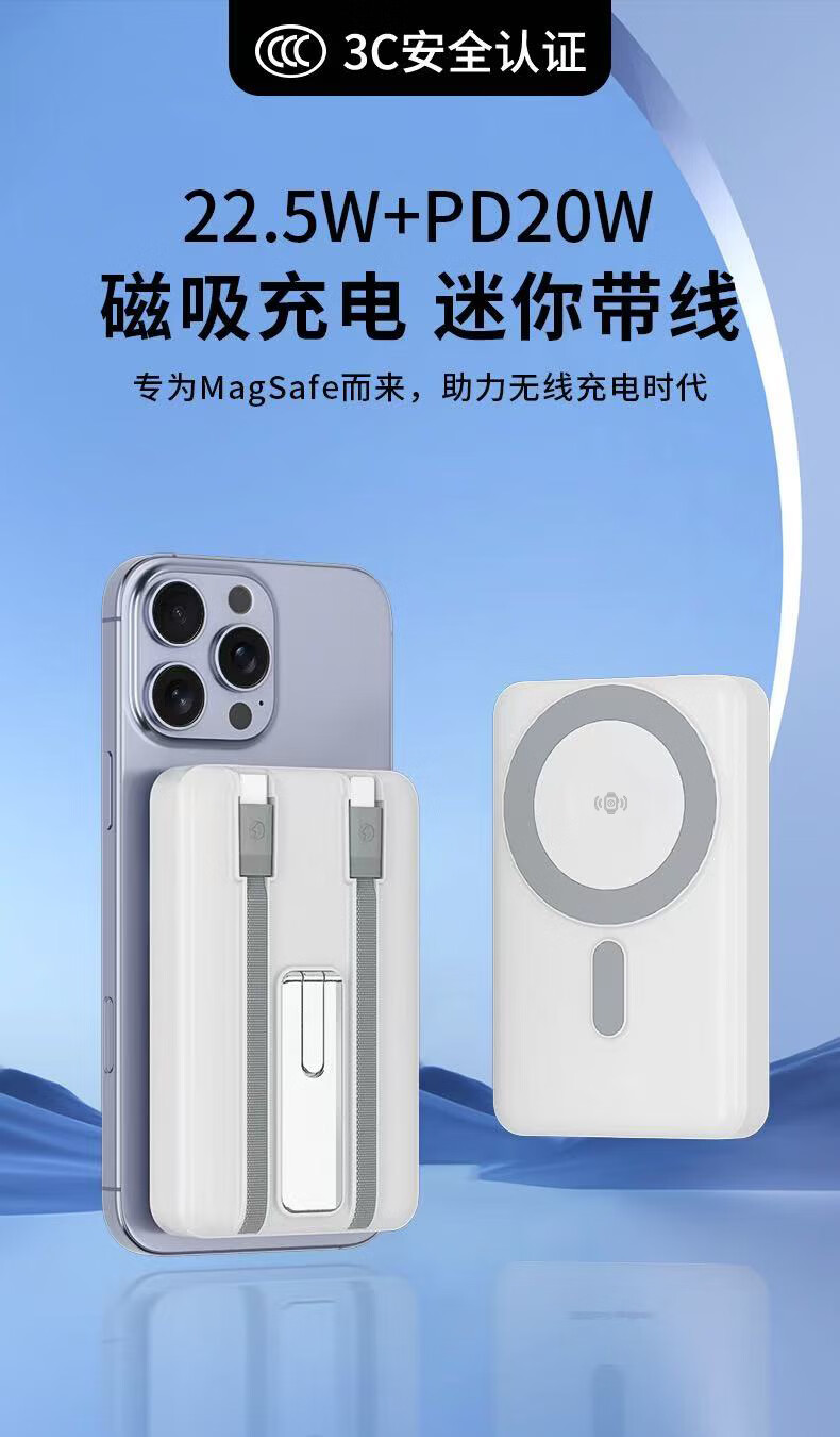 功能:多U口输出,磁吸充电,自带支架,自带数据线,无线充电