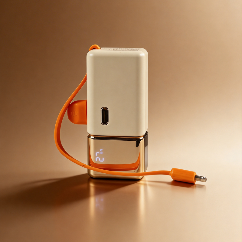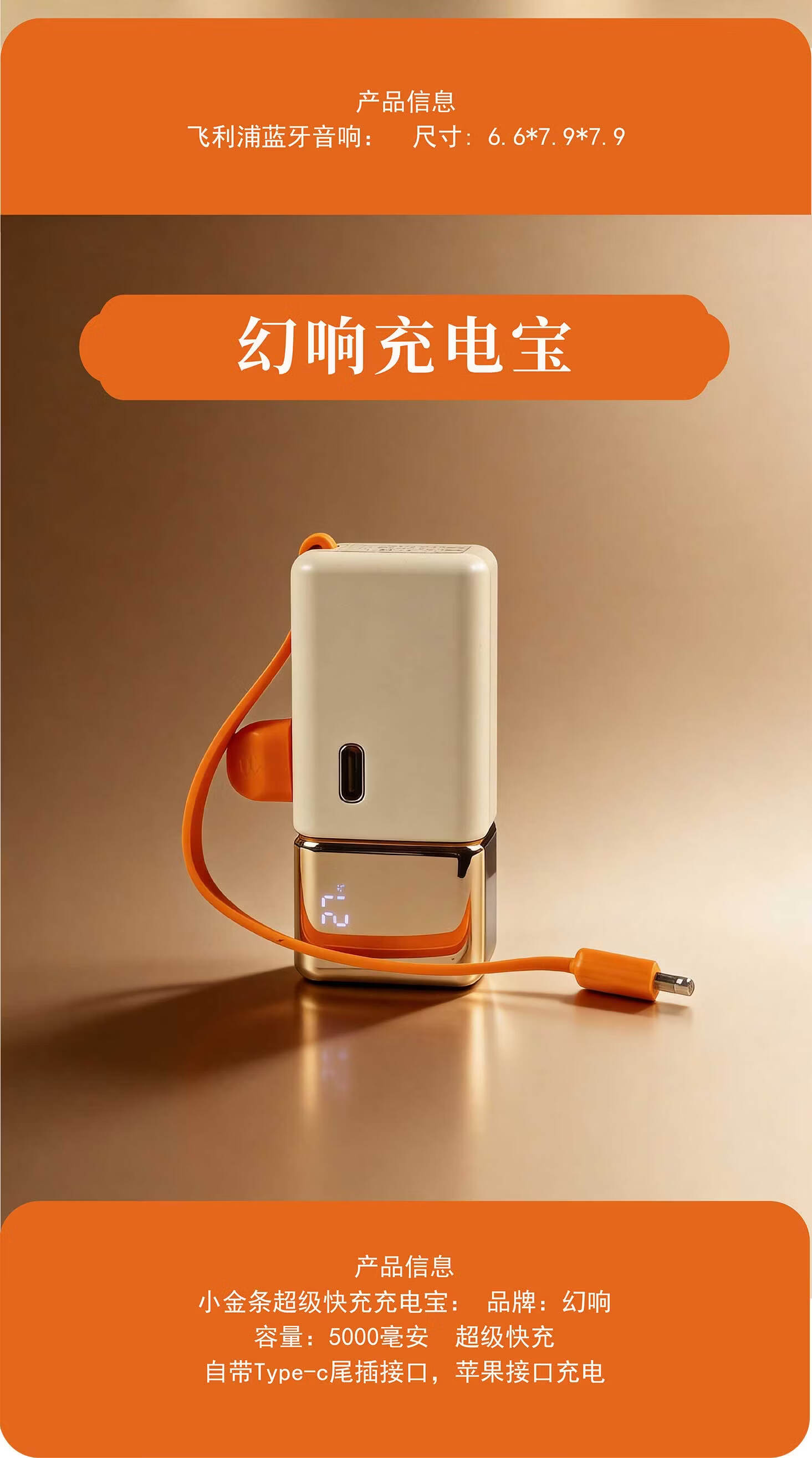 小金条超级快充充电宝:品牌:幻响 容量:5000毫安 超级快充、 自带Type-c尾插接口,苹果接口充电
