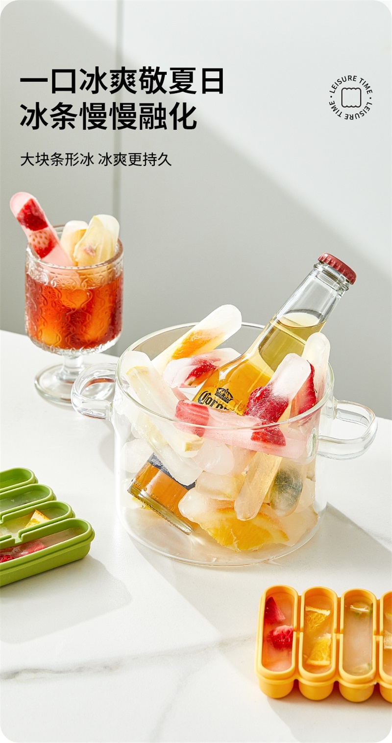 冷饮大狂欢,清凉小冰砖,持久冰爽,一条过瘾;一口冰爽敬夏日,冰条慢慢融化,大块条形冰冰爽更持;mini体积节省冰箱空间可叠放使用。