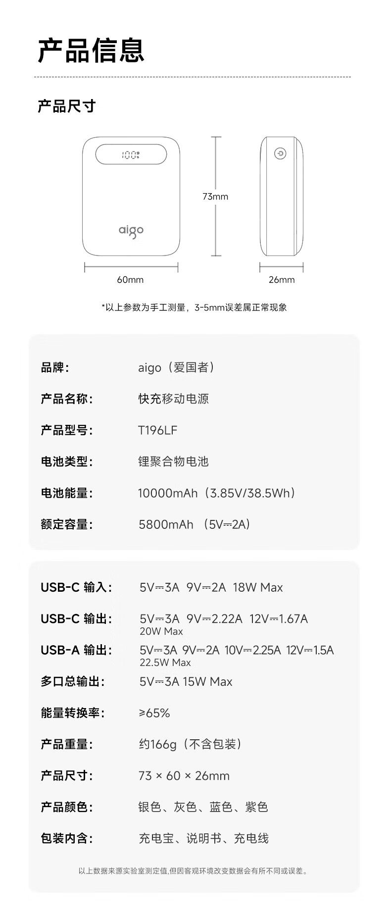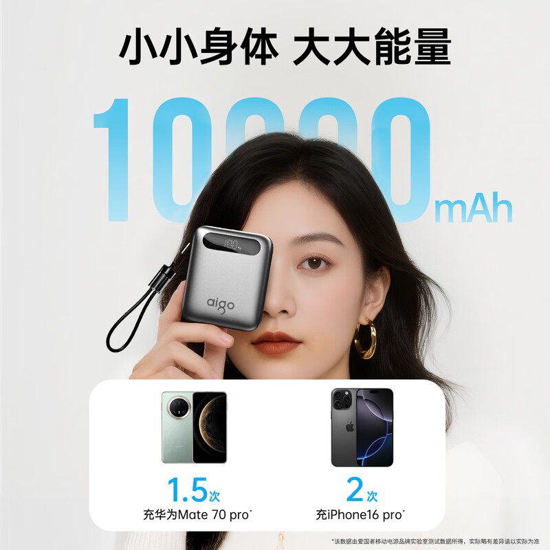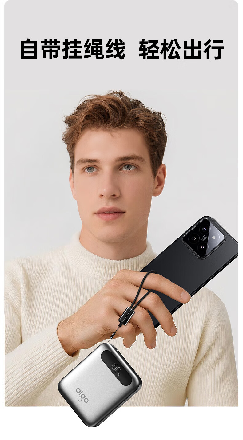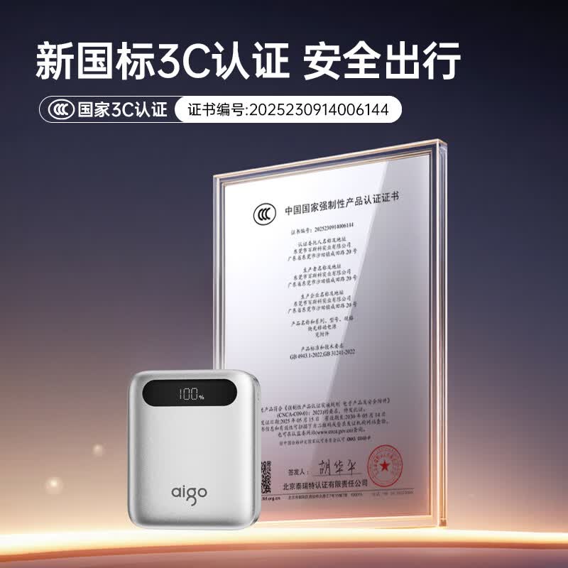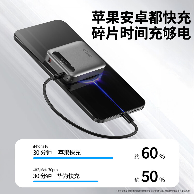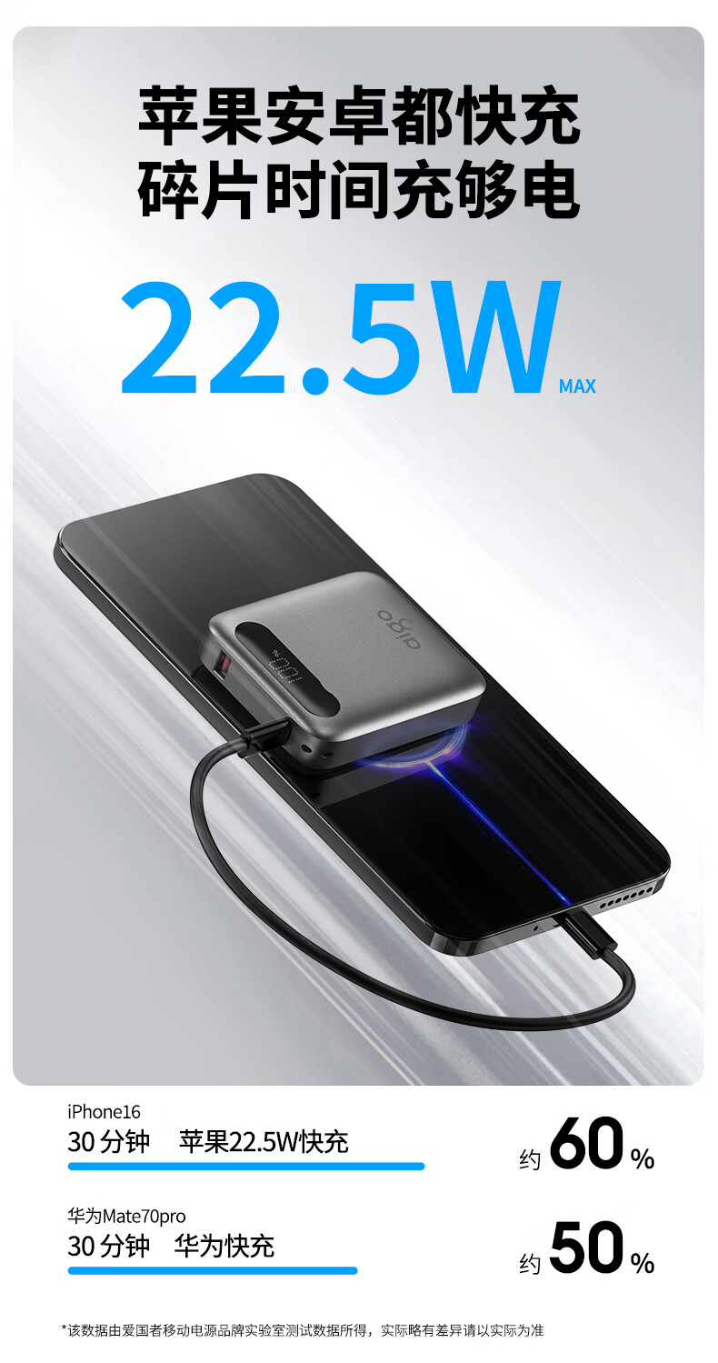 3C认证充电宝22.5W;10000毫安大容量;小巧便携快充移动电源可上飞机
