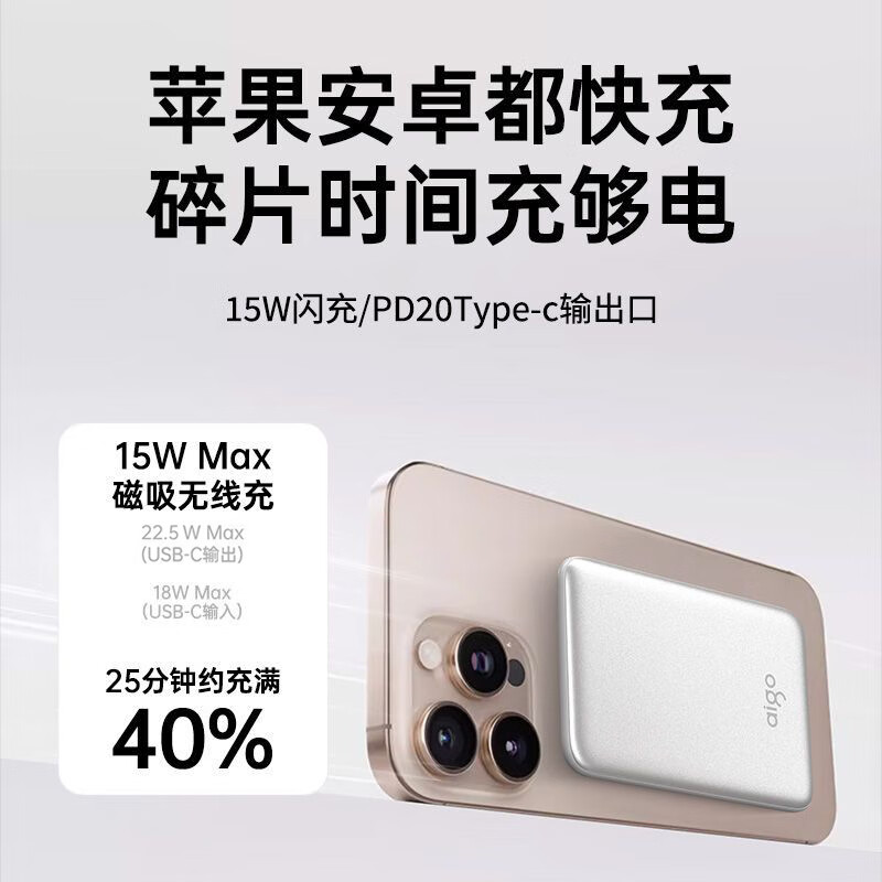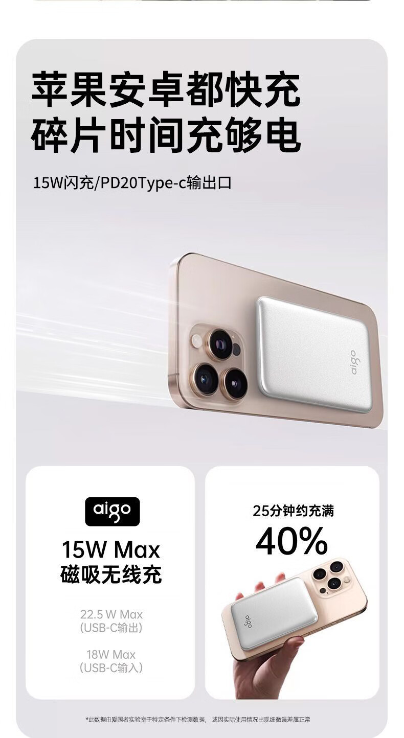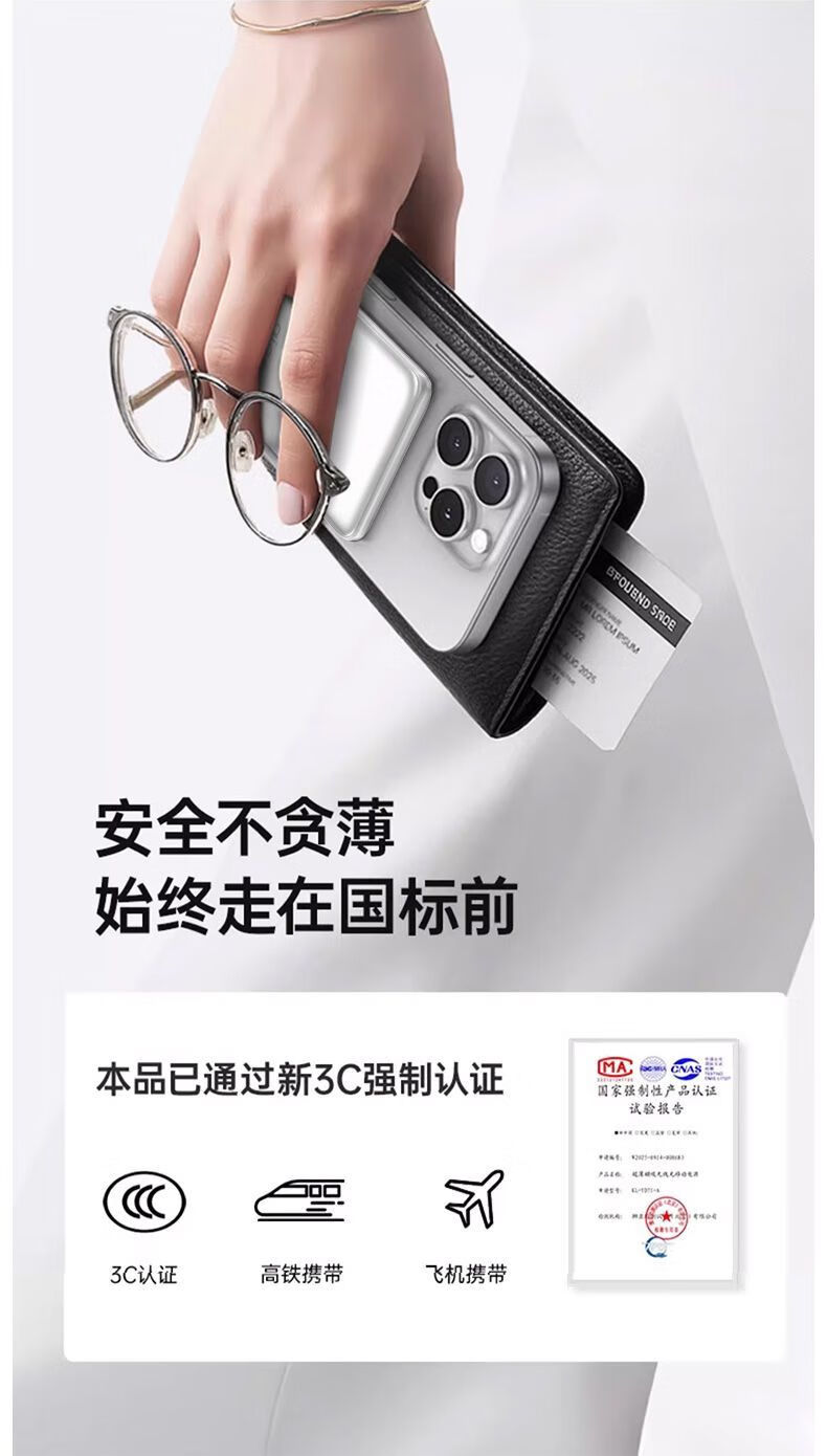 3C认证22.5W超薄无线磁吸充电宝;10000毫安大容量快充;移动电源可上飞机