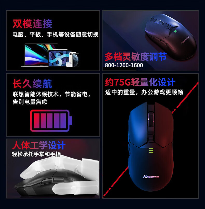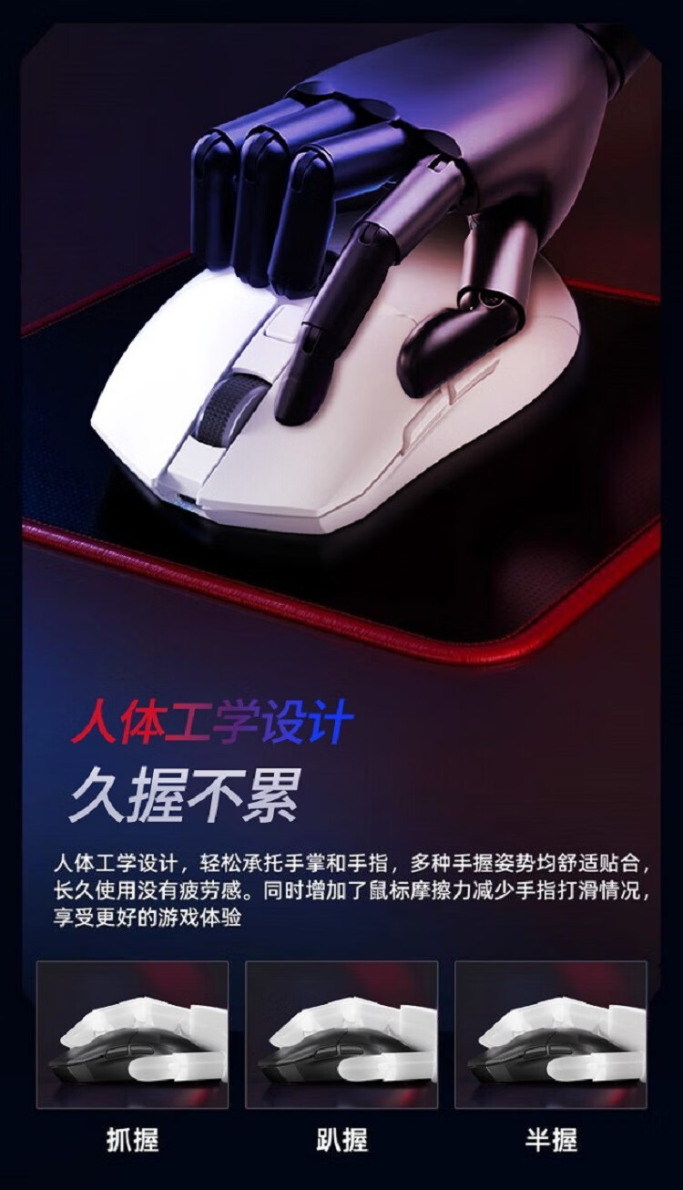 不挑设备,兼容绝大部分设备和系统;人体工学设计,久握不累;多档灵敏度调节